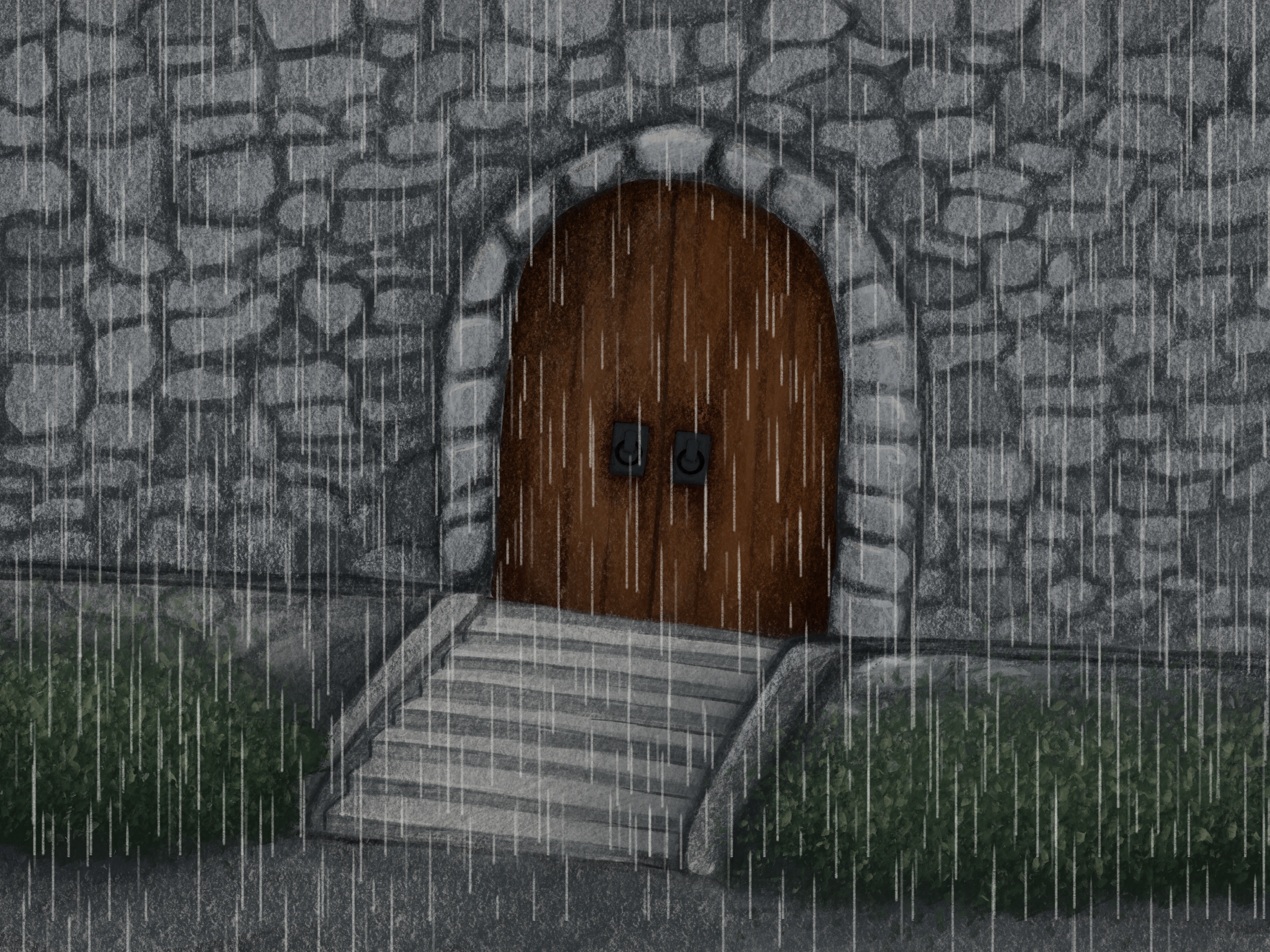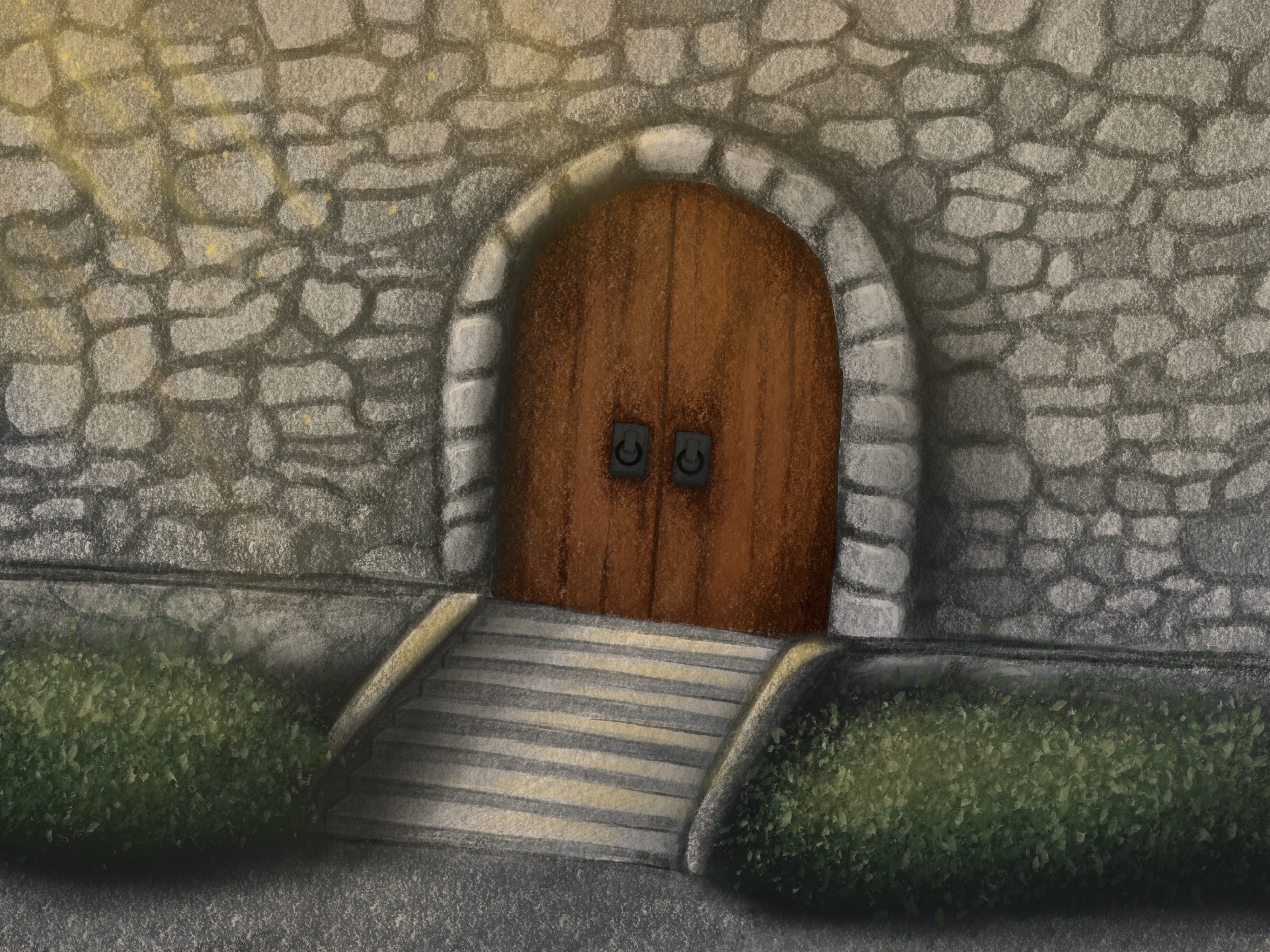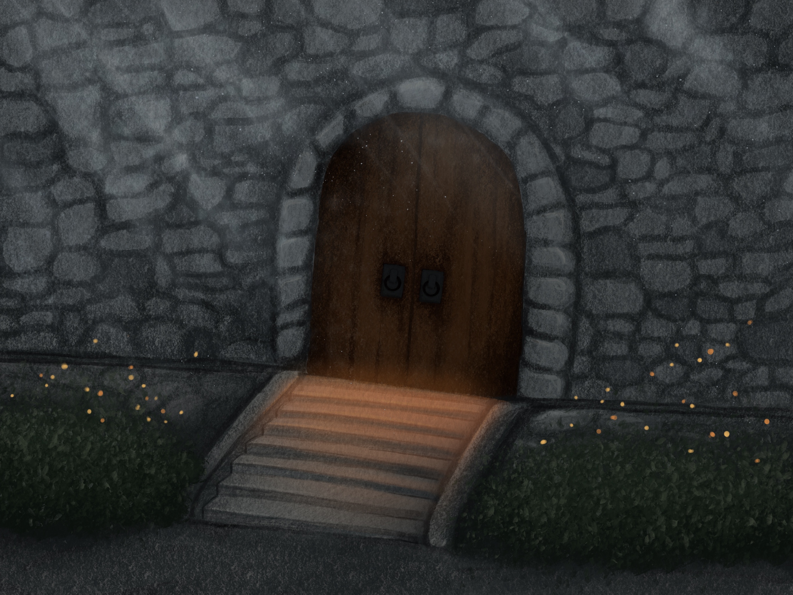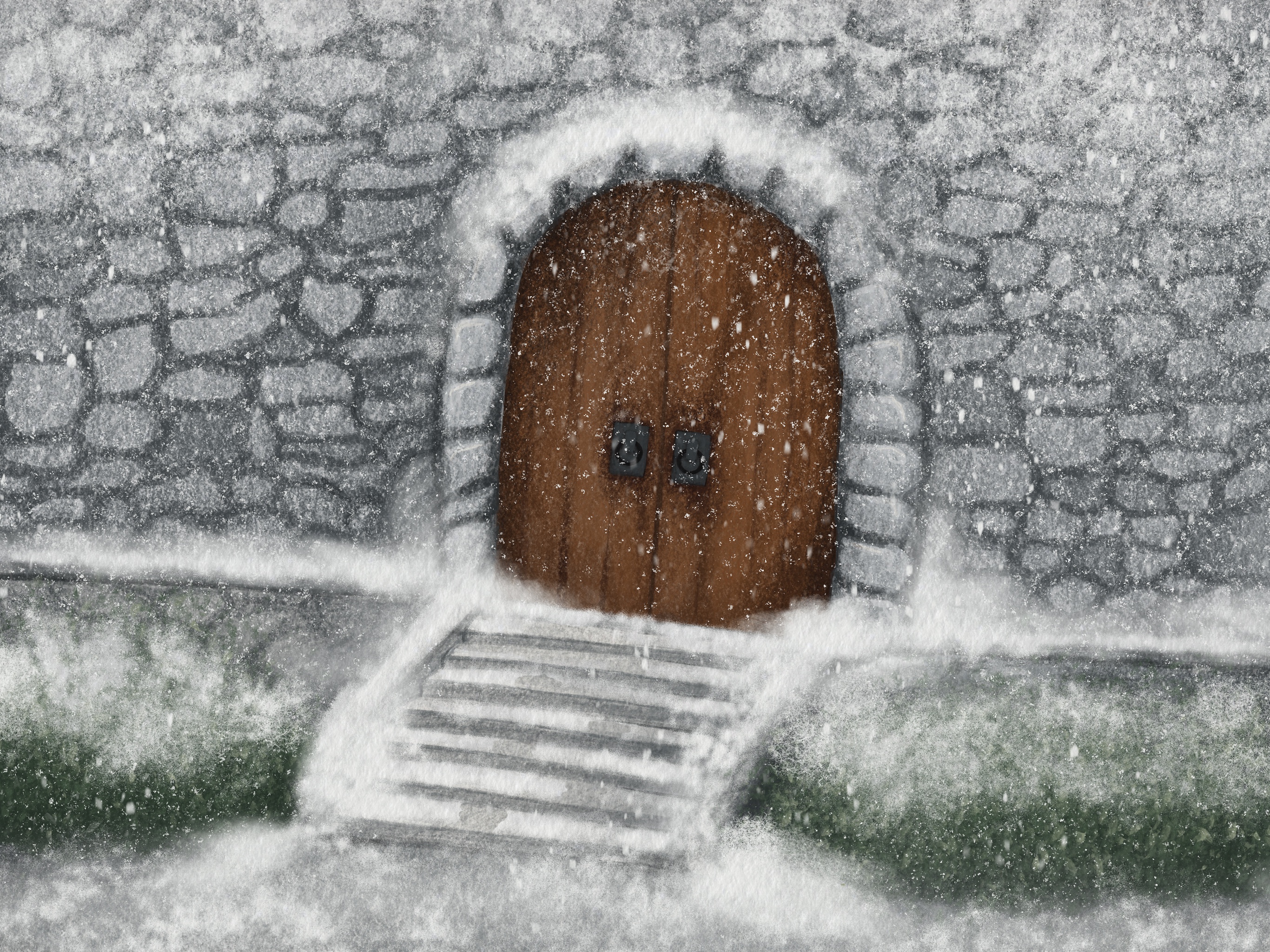 Taking inspiration from the book The Starless Sea by Erin Morgenstern, I created an old church style door that would lead someone down to the library. Exploring how the door would look across the different seasons and at night.
